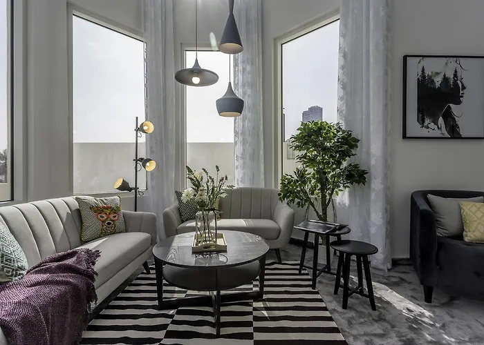 The spacious 220 m^2 One Perfect Stay - Jumeirah Heights Dubai apartment is located nearly a 10-minute drive from JBR Beach and offers Wi-Fi for either business or leisure. The 4-bedroom apartment lies in the Emirates Hills district of Dubai, at a medium distance from Emirates Golf Club.